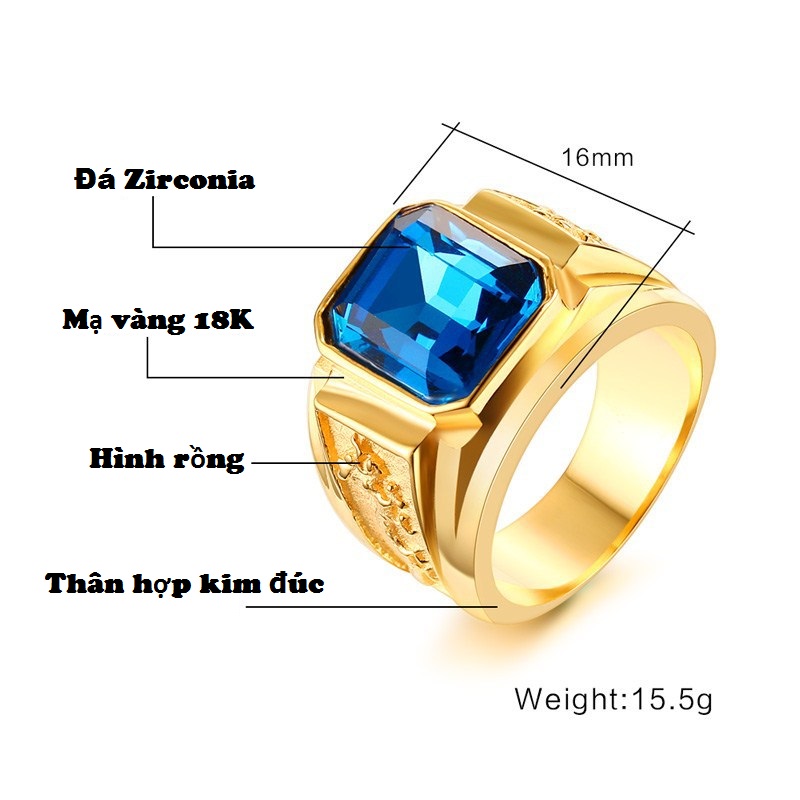 Combo Nhẫn Nam chạm rồng mặt đá phong thuỷ tài lộc, Kèm hộp đựng lót nỉ.