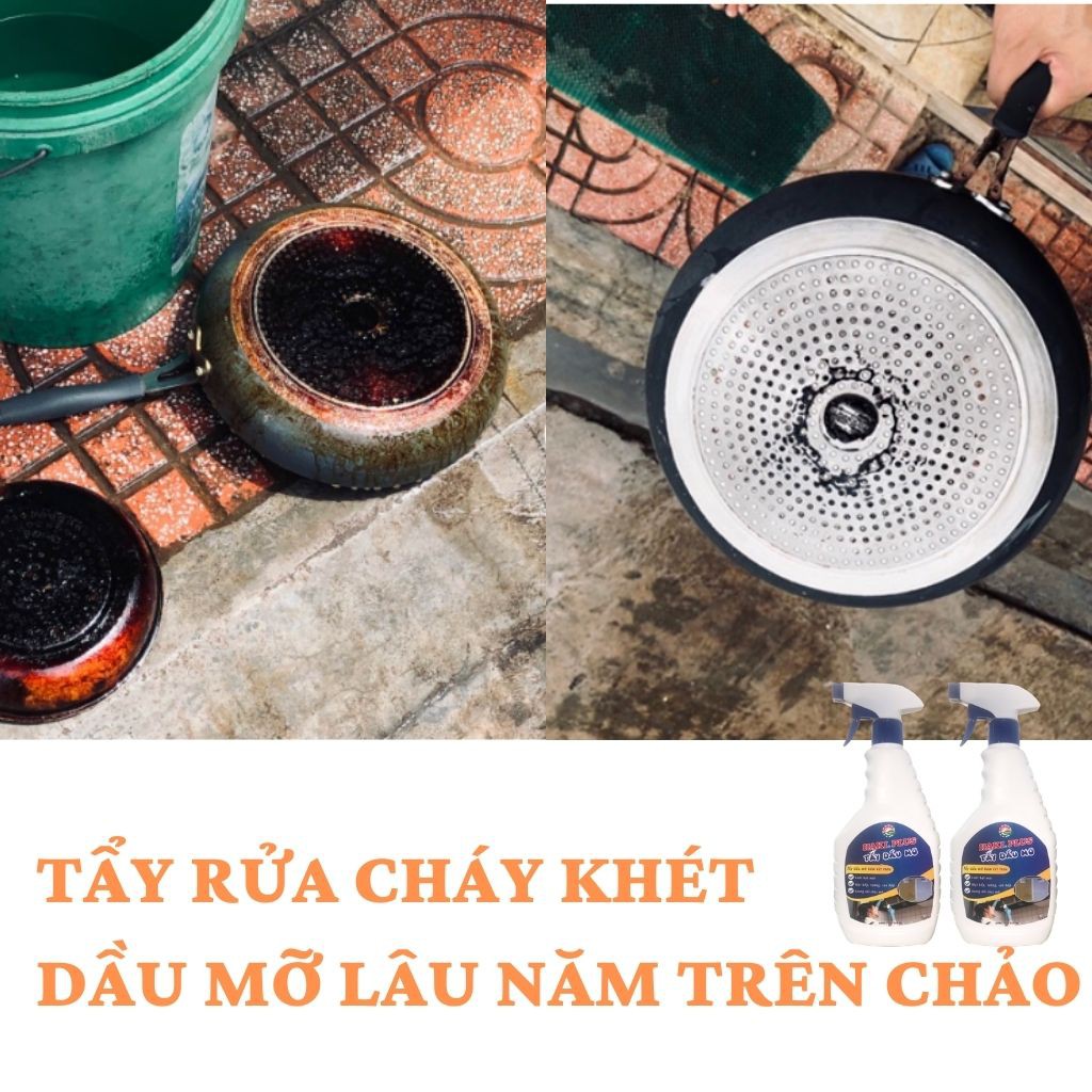 2. Tẩy dầu mỡ Haki Plus 500ml Tẩy dầu mỡ siêu mạnh Haki Plus tẩy rửa dầu mỡ cứng đầu két lâu năm trên lưới hút mùi, bếp gas, bếp từ, tường tủ bếp, xoong nồi, chảo cháy * HDSD tẩy dầu mỡ Haki Plus: – Đeo găng tay cao su khi sử dụng. Xịt trực tiếp lên bề mặt cần vệ sinh, đợi khoảng 3-5p cho dung dịch thâm nhập và phân rã cấu trúc vết bẩn. + Đối với lưới hút mùi, Dùng bàn chải đánh qua bề mặt sau đó lau chùi lại bằng khăn ướt hoặc rửa lại bằng nước. + Đối với mặt bếp ga bếp từ, tường tủ bếp, xịt qua và đợi 3 phút hoặc lau chùi cọ luôn, lau lại bằng khăn ướt. – Với xoong nồi cháy đen, nâu, vàng, xịt lên và ngâm từ 15-20p sau đó dùng miếng cước cọ xoong cọ lại tới khi sạch hoàn toàn. Xả lại bằng nước sạch.