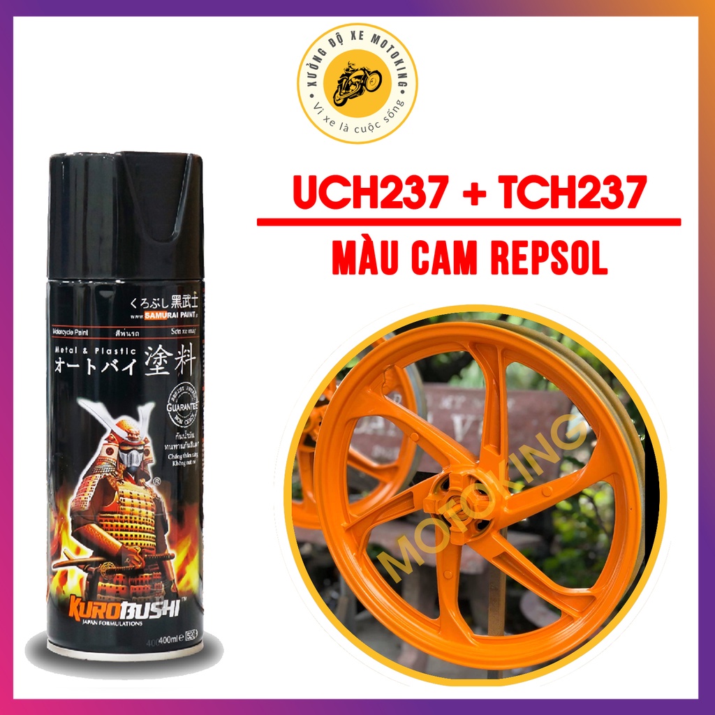 Giới thiệu combo sơn samurai màu cam Reposol UC + TCH237 - dòng sơn xịt màu 2 lớp chuyên dụng dành cho sơn xe máy, ô tôi