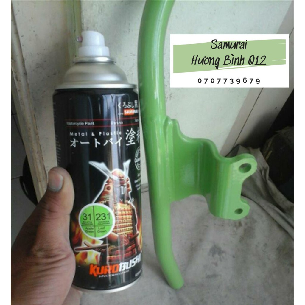 Giới thiệu [COMBO] Sơn xịt SAMURAI màu Xanh Lá Nhạt - 231 (gồm 4 chai: lót-nền-màu-bóng)