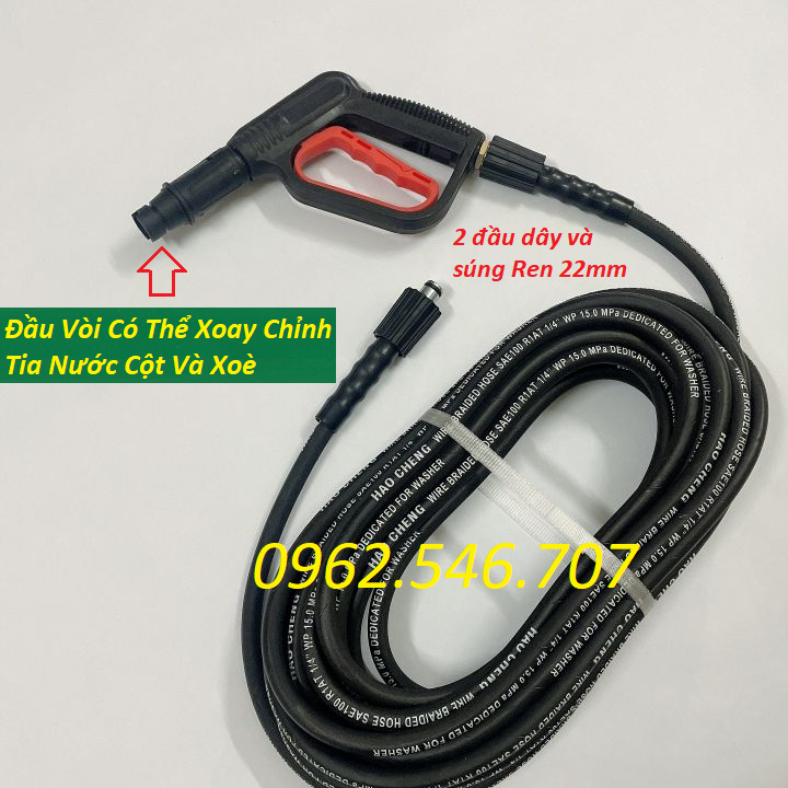 THÔNG SỐ KỸ THUẬT: DÂY RỬA XE 10M -15M - 20M -REN 22MM kèm sung có đầu điều chỉnh tia nước
