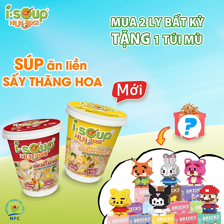 Combo Súp Gà Táo Đỏ + Súp Nấm Yến Mạch ISOUP HUUPS Tặng 1 Túi Mù - Súp Ăn Liền Sấy Thăng Hoa
