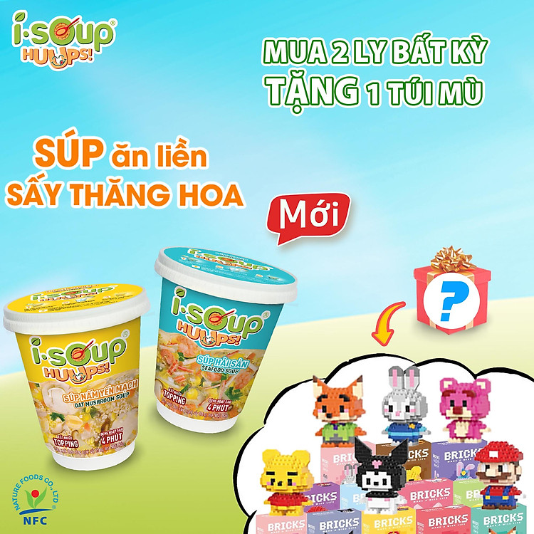 Combo Súp Hải Sản + Súp Nấm Yến Mạch Ăn Liền ISOUP HUUPS Tặng 1 Túi Mù - Súp Ăn Liền Sấy Thăng Hoa