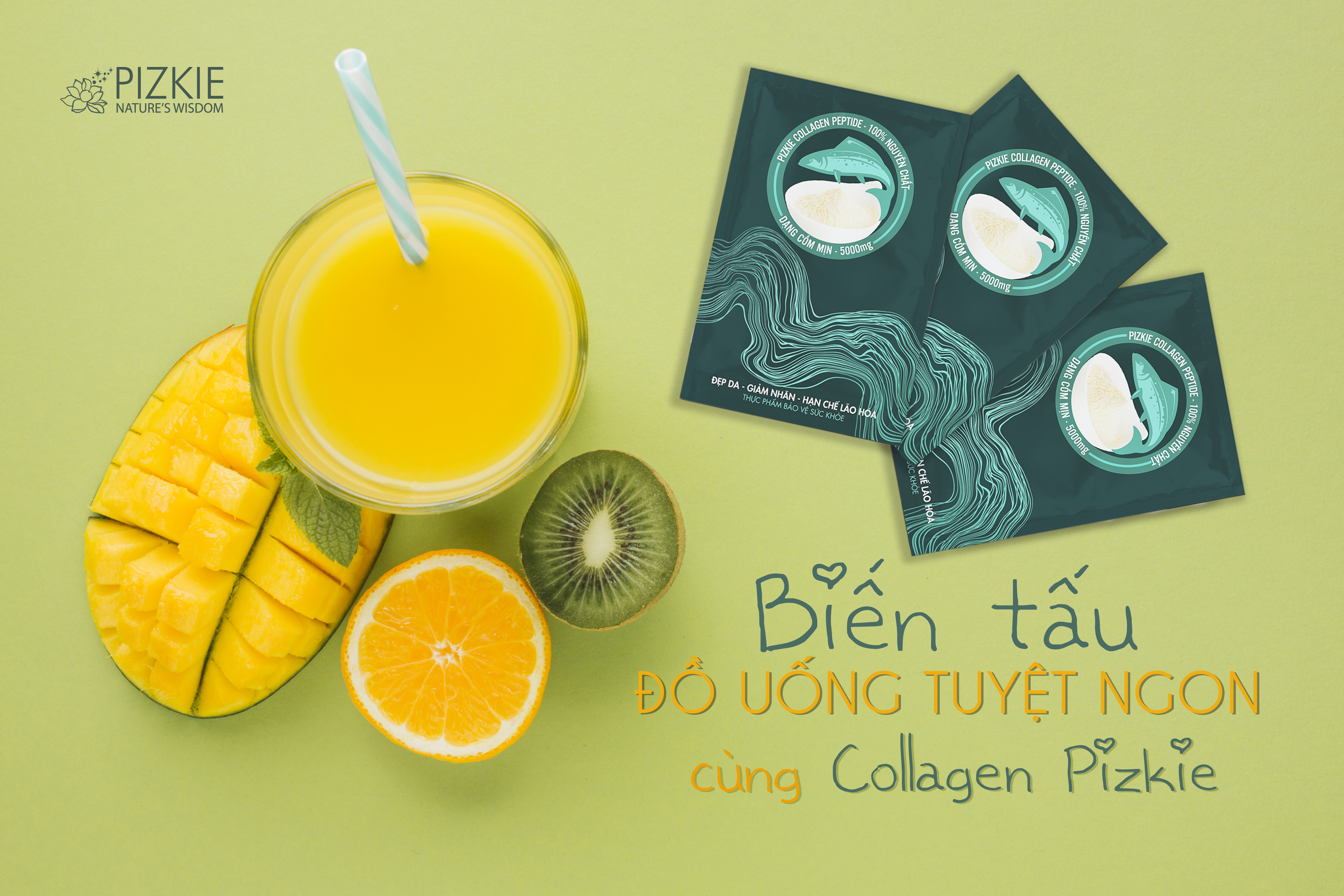 + Pha gói bột collagen (5gram) với nước uống. Collagen sẽ tan đều trong nước.