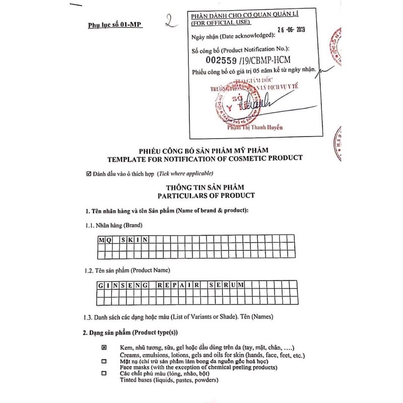 SERUM THAY DA NHÂN SÂM MQ SKIN Genshin Repair 1.Công dụng