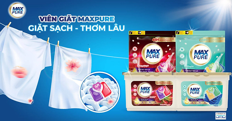 Chỉ thả một viên vào máy, bạn khám phá sức mạnh làm sạch vượt trội, hương thơm quyến rũ lưu giữ 7 ngày, khả năng bảo vệ màu tối ưu nhờ Carezyme. Viên giặt Maxpure là giải pháp thông minh, kinh tế, đẳng cấp, kiến tạo không gian sống sạch thơm, tinh tế cho tổ ấm hiện đại.