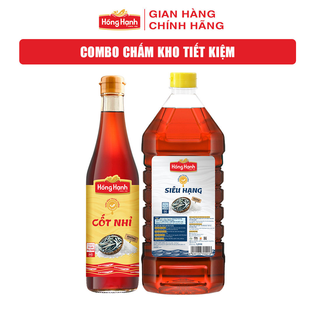 Thương hiệu: Nước mắm Phú Quốc Hồng Hạnh Cốt Nhỉ 40 độ đạm 600ml + Siêu Hạng 35 độ đạm 1,9 lít