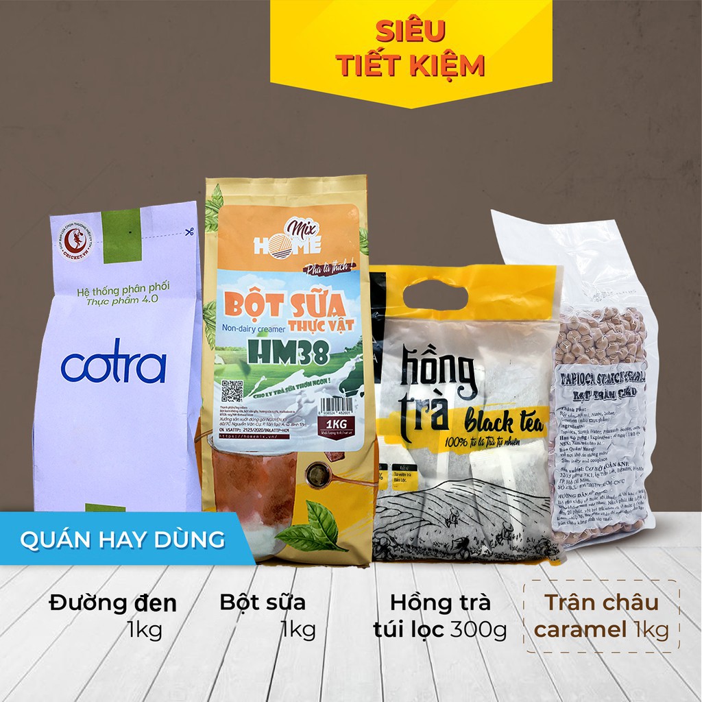🎋🎋Bộ Combo bao gồm: Bộ 4 sản phẩm pha Trà Sữa được khách hàng tin, lựa chọn hàng đầu. ✔️Hồng trà (lựa chọn) ✔️Bột sữa (lựa chọn) 1kg. ✔️Đường đen 1kg. ✔️Trân châu (lựa chọn) 1kg.
