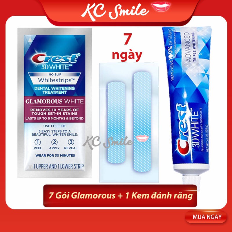 Giới thiệu Combo trắng răng Miếng dán trắng răng Crest Glamorous + Kem đánh răng Crest 3D (7 ngày)