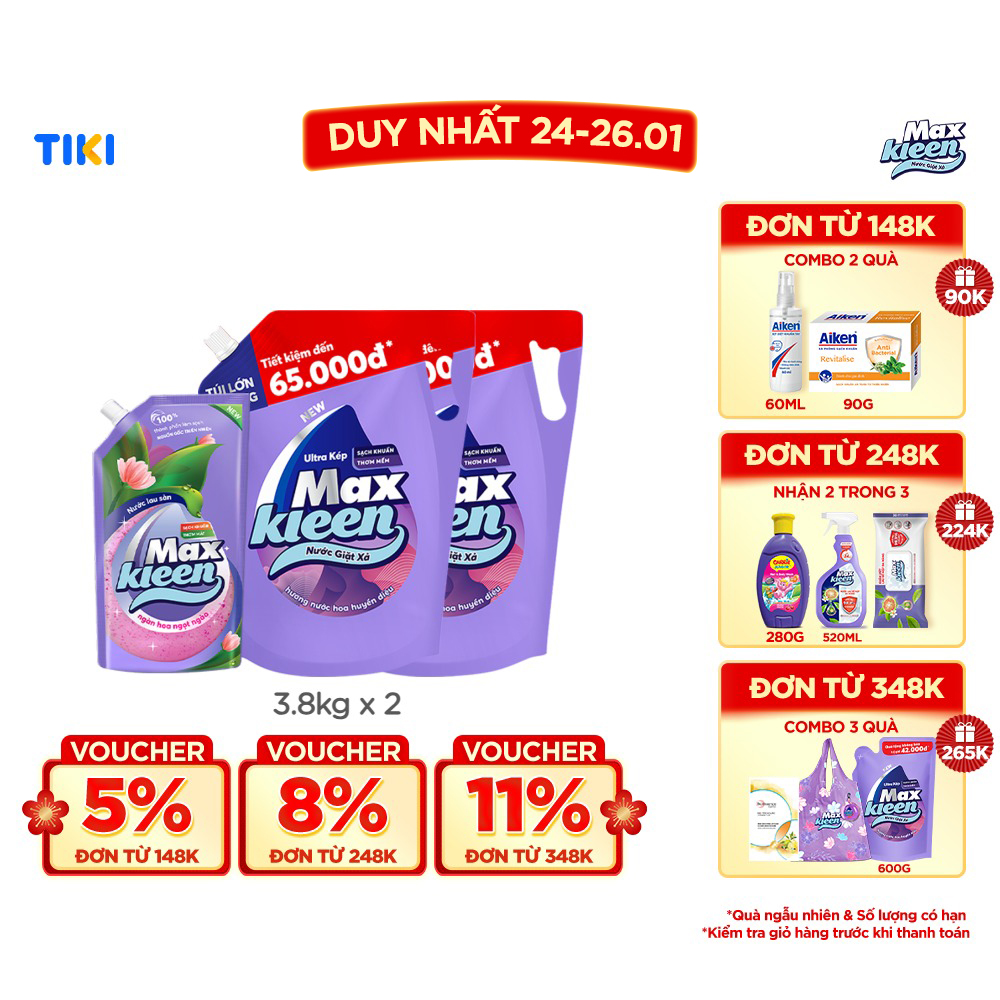 Thông tin sản phẩm Túi Nước Giặt Xả MaxKleen 3.8kg Hoa Nắng