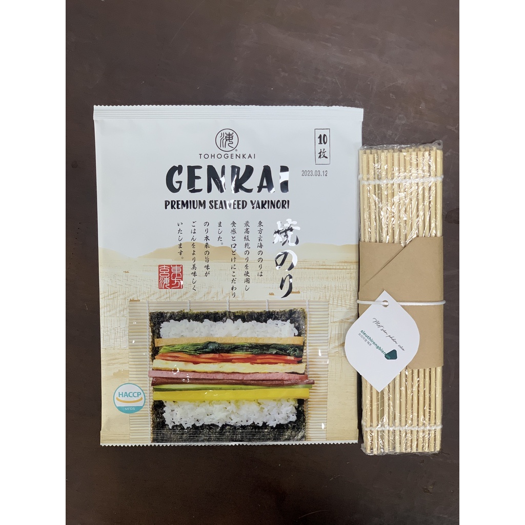 Thực phẩm và đồ uống > Đồ ăn vặt > Các loại rong biển ăn liền || [Combo ưu đãi] Rong biển cuộn cơm GENKAI làm kimbap/ sushi siêu thơm ngon & mành cuộn cơm chất liệu tre cao cấp