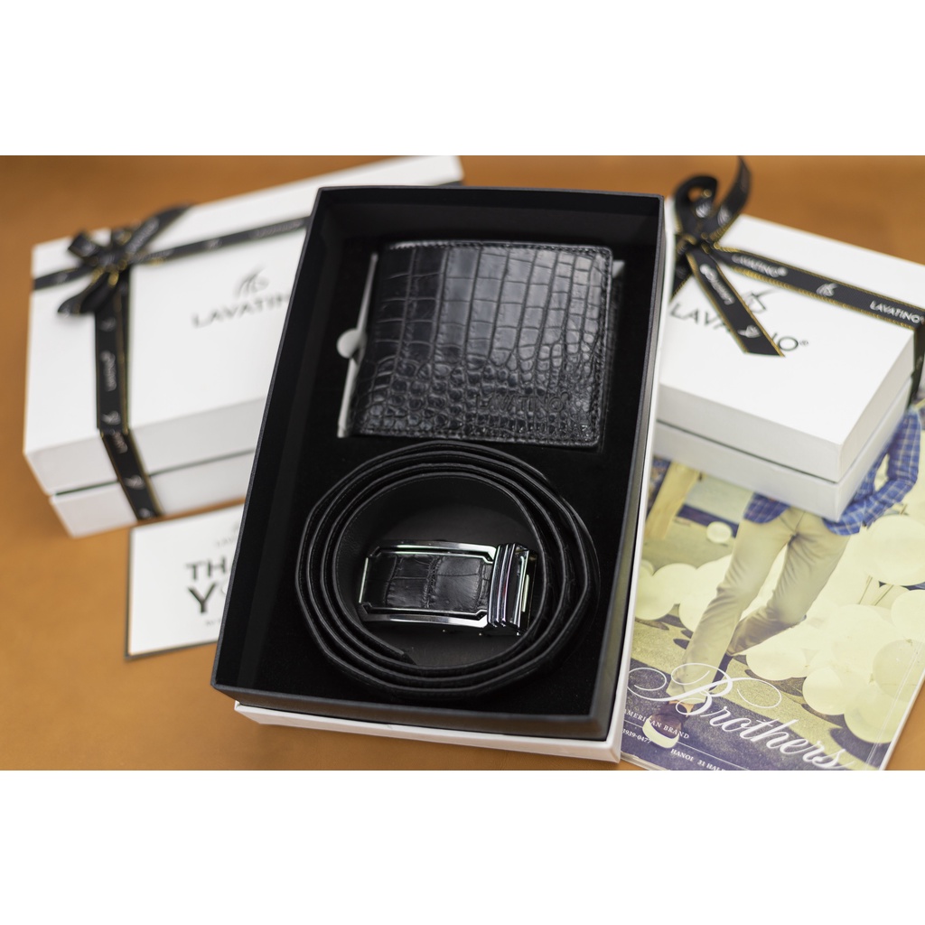 Giới thiệu Combo Ví Nam Thắt Lưng Da Cá Sấu Vân Bụng 2 Mặt Thiết Kế Cao Cấp Lavatino