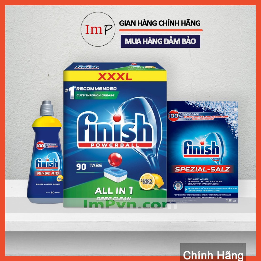 Nhà cửa & Đời sống > Dụng cụ chăm sóc nhà cửa > Chất tẩy rửa || Combo Viên rửa bát Finish Hộp All in one (100 viên hoặc 90 viên), Muối 1.2kg, Nước làm bóng 400ml