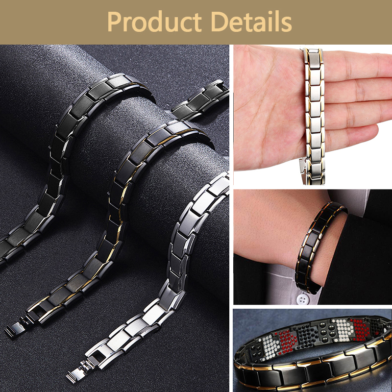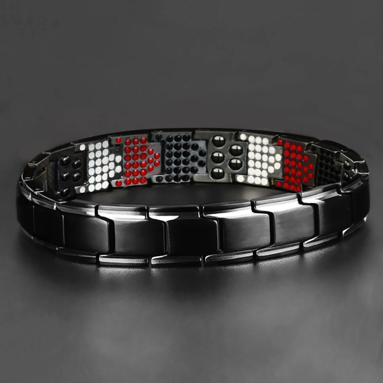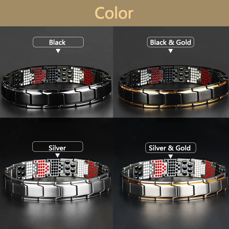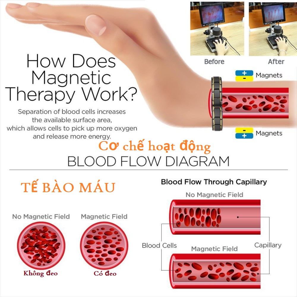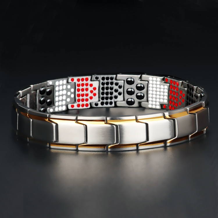 4 Loại đá hiếm gắn trên thân vòng: Nam châm, Germanium, Hồng ngoại xa, ION âm, phát ra từ trường và tác động lên cơ thể sẽ giúp cho máu lưu thông dễ dàng hơn, làm tan các xơ vữa trong mạch máu.