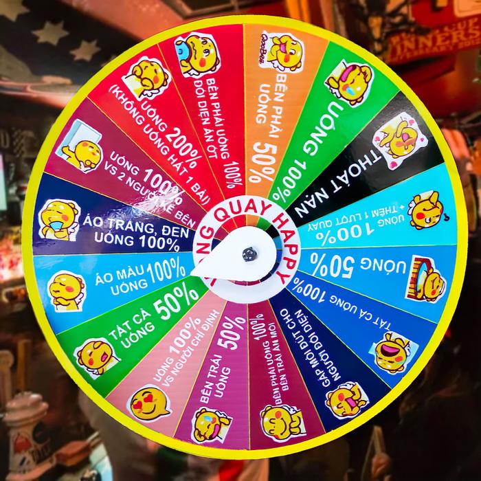 - Người chơi sẽ quay vòng quay may mắn khi đến lượt uống của mình. Kết quả sẽ hiển thị ra sau khi vòng quay kết thúc, dừng ở ô nào thì bạn sẽ phải thực hiện đúng theo kết quả của ô đó.