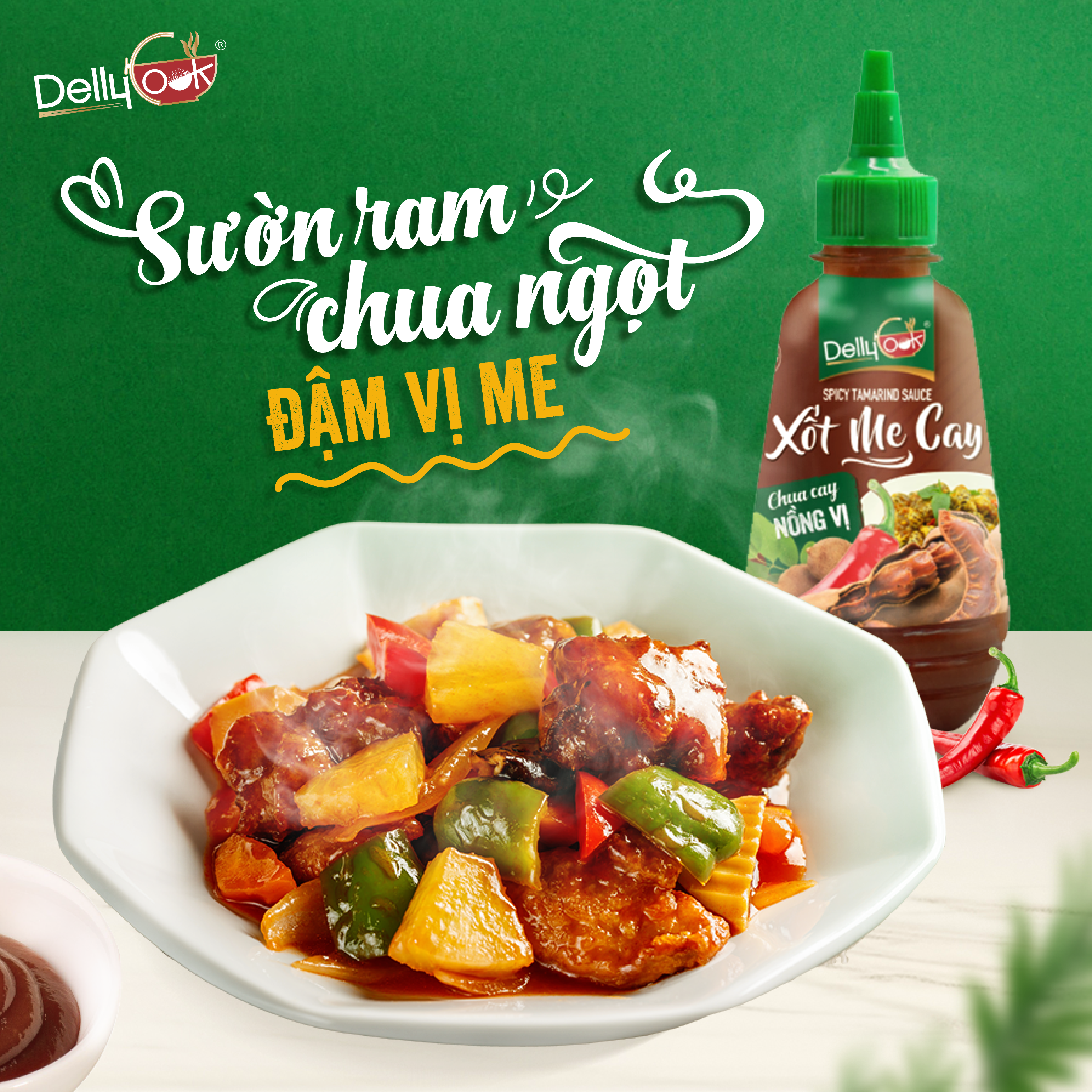 Với 40% cốt me nguyên chất được cô đặc từ me tươi hoà quyện với vị ớt cay nồng đặc trưng của xứ Tây Ninh, Xốt Me Cay DellyCook mang đến vị chua cay hoàn hảo cho món ăn từ me mà không cần phải nêm nếm quá nhiều.