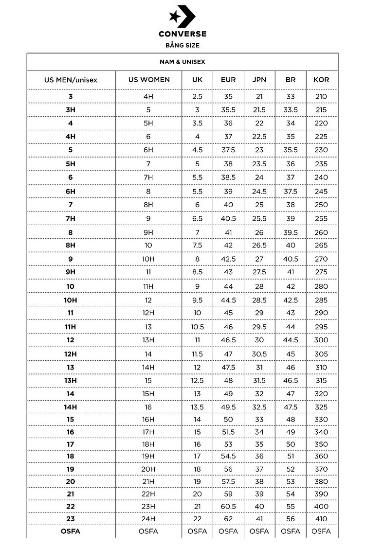 THÔNG TIN THƯƠNG HIỆU Được thành lập vào năm 1908, Converse là một thương hiệu giày thể thao nổi tiếng của Mỹ. Với thiết kế đặc trưng không thể trộn lẫn, form dáng cổ điển ôm chân vô cùng chắc chắn và cứng cáp. Phần logo độc được in sắc nét. Converse trở thành một must-have item trong bộ sưu tập giày của tất cả mọi người, không chỉ riêng các sneakerhead. Bên cạnh giày thể thao, Converse cũng thiết kế các sản phẩm thời trang khác như quần áo, túi xách, balo,... CAM KẾT THƯƠNG HIỆU