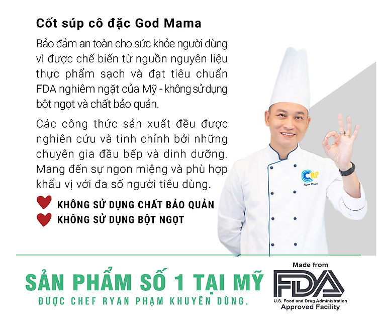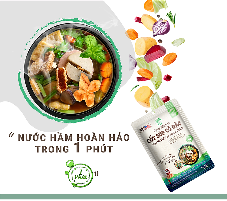 Thành phần | Cốt súp được cô đặc từ nước hầm rau, củ, quả |