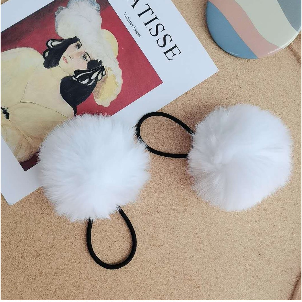 Phụ Kiện Thời Trang > Phụ kiện tóc > Đồ buộc tóc & Nơ || Cột tóc cục bông bom bom chất lông xinh xắn - giá 1 cái