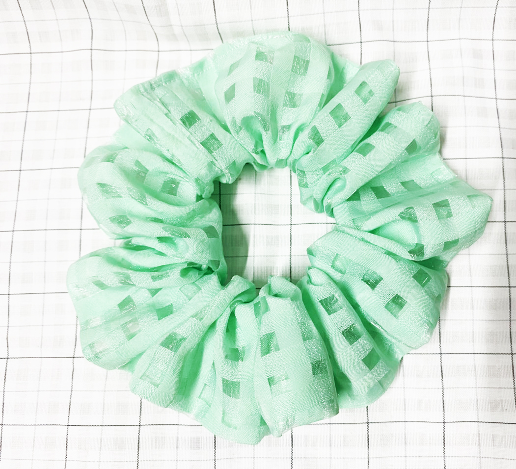 Dây cột tóc scrunchies màu xanh lá caro lưới size trung