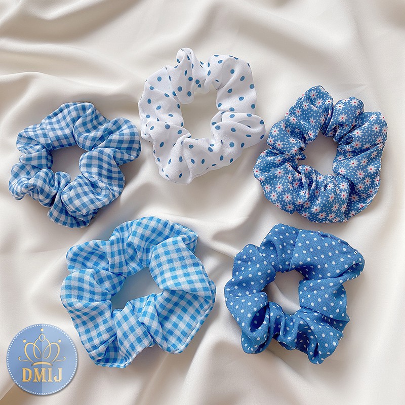 Giới thiệu Cột tóc vải scrunchies xanh thiên thanh dây buộc tóc scrunchies nhiều mẫu