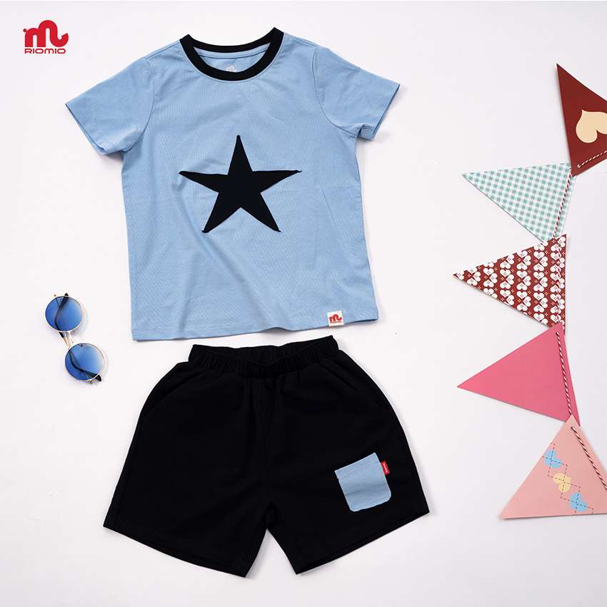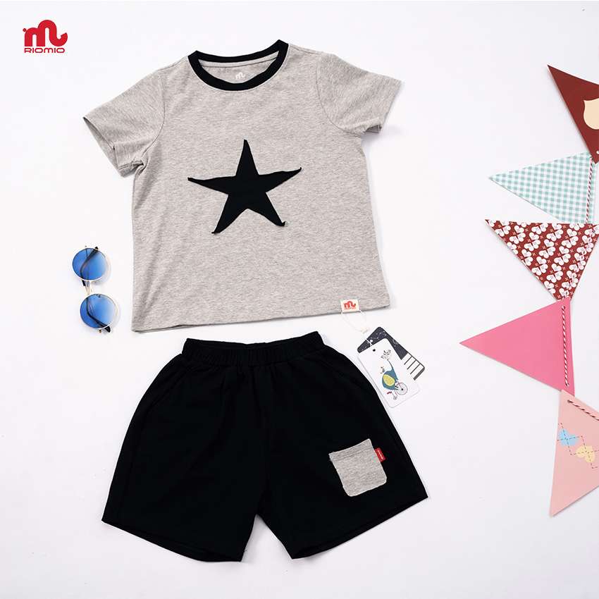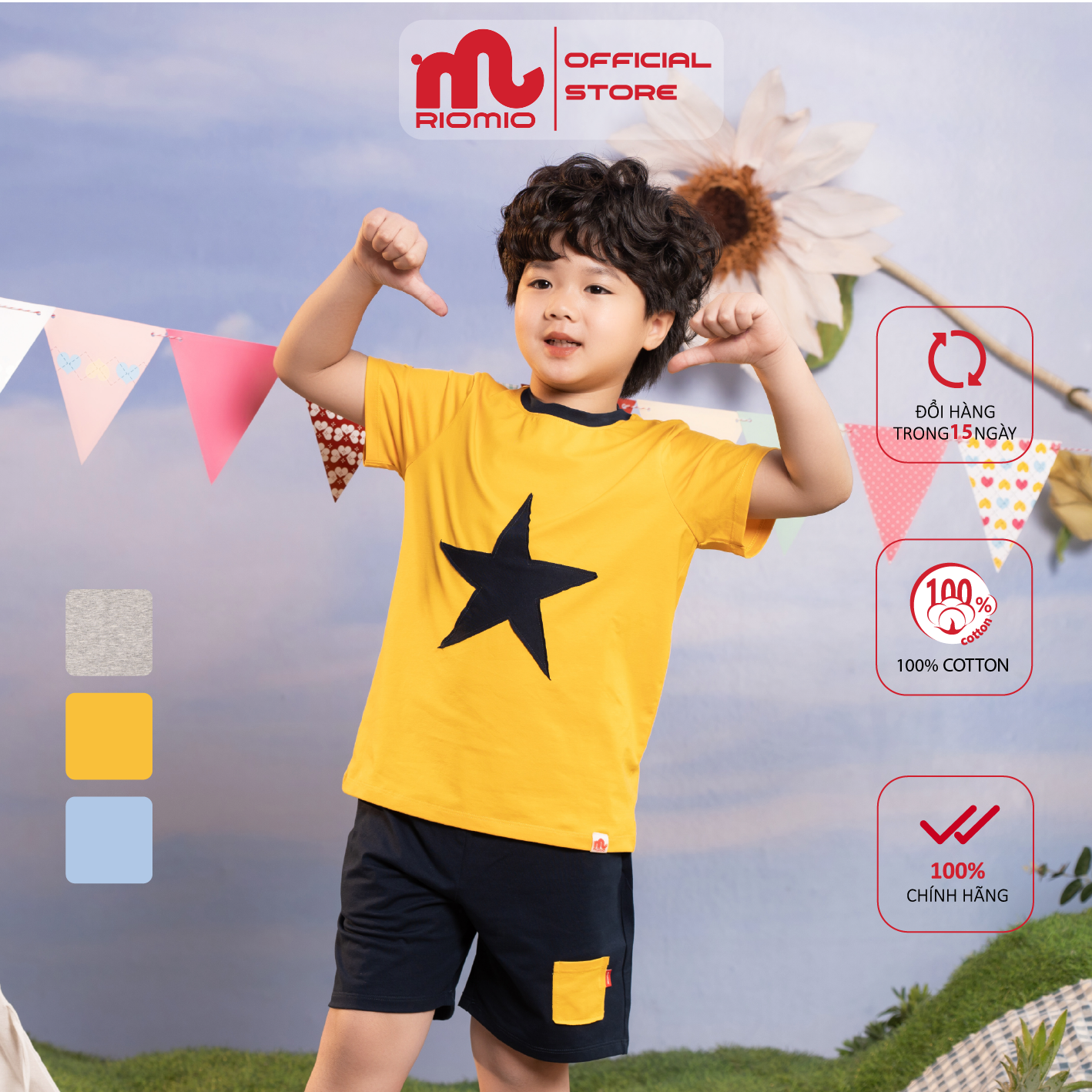Bộ cotton cộc tay bé trai phối sao RIOMIO size 2-7 tuổi (13-27kg) mềm mại mát mẻ cho bé đi chơi - RBT395