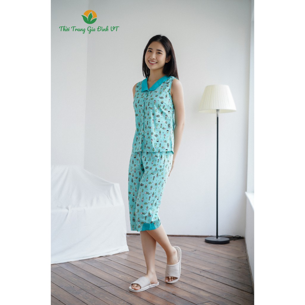 Giới thiệu Bộ cotton mặc nhà nữ quần lửng, áo sát nách B45.2101 - Thời Trang Gia Đình VT
