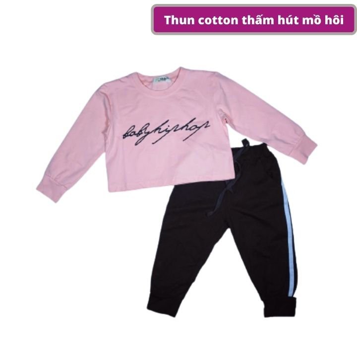 Bộ đồ croptop bé gái dễ thương in chữ hiphop Mẹ nào chuộng phong cách hiphop năng động thì không thể bỏ qua mẫu này nhé! - Bộ đồ croptop này dành cho các bé từ 10kg-40kg - Chất thun mát, hút mồ hôi thích hợp cho các bé năng động ---------------------------------------------------------------------- ** Mô tả sản phẩm: - Bộ đồ croptop bé gái được may kiểu áo lửng tay dài. Trên áo in chữ hiphop cách điệu. -Quần được may theo phong cách thể thao, ống bo, phối sọc hai bên tạo nét năng động.
