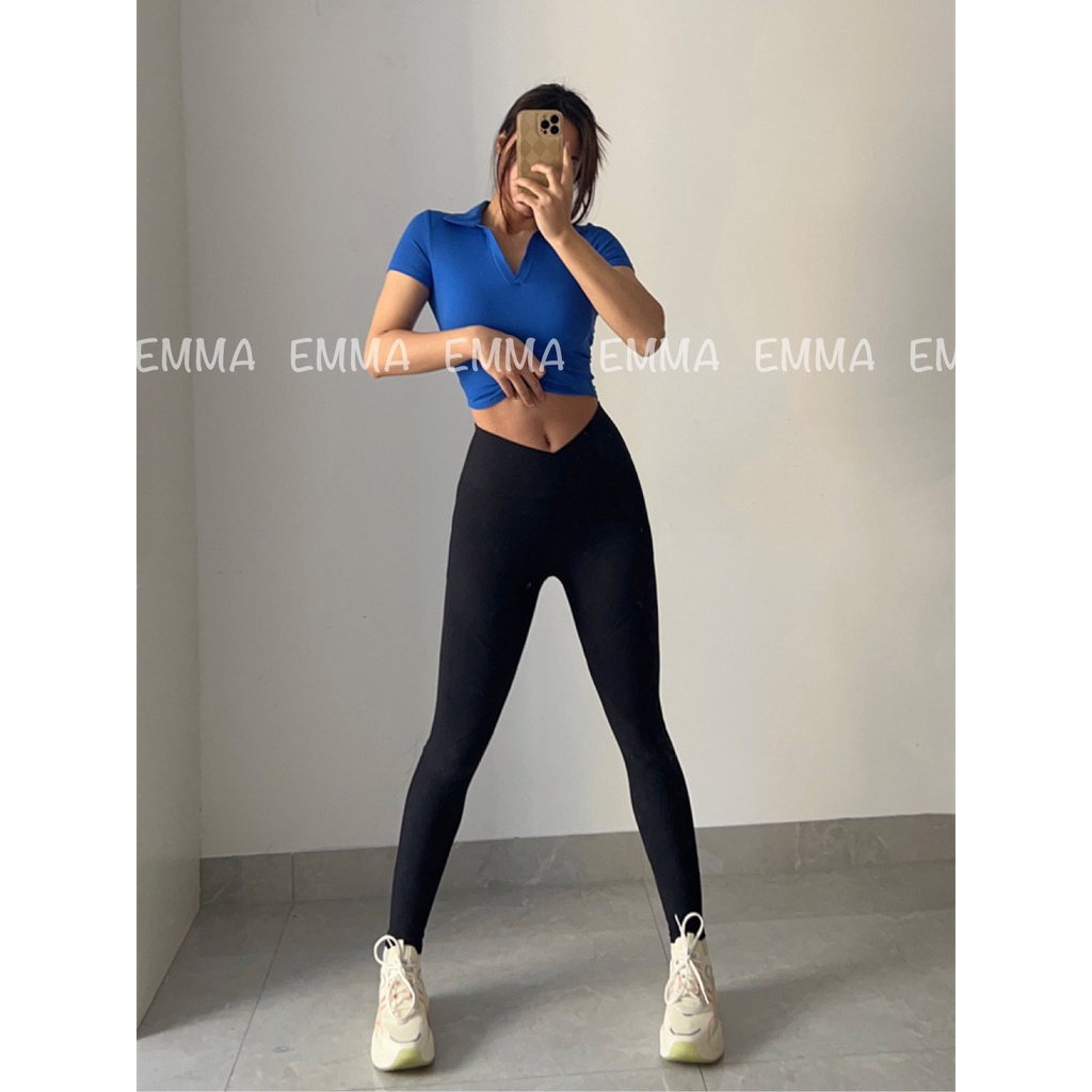 Giới thiệu Croptop cổ bẻ vạt bầu Áo Tập Gym Nữ Yoga Thun Gân Tay Ngắn