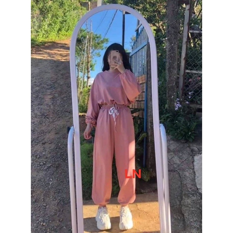bộ crt trơn dài tay quần bom chun gấu áo rút dây bụng