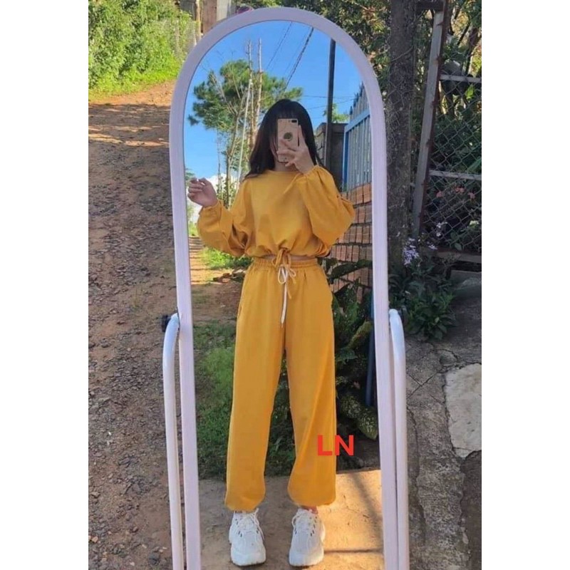 Thời Trang Nữ > Bộ > Đồ lẻ || bộ crt trơn dài tay quần bom chun gấu áo rút dây bụng
