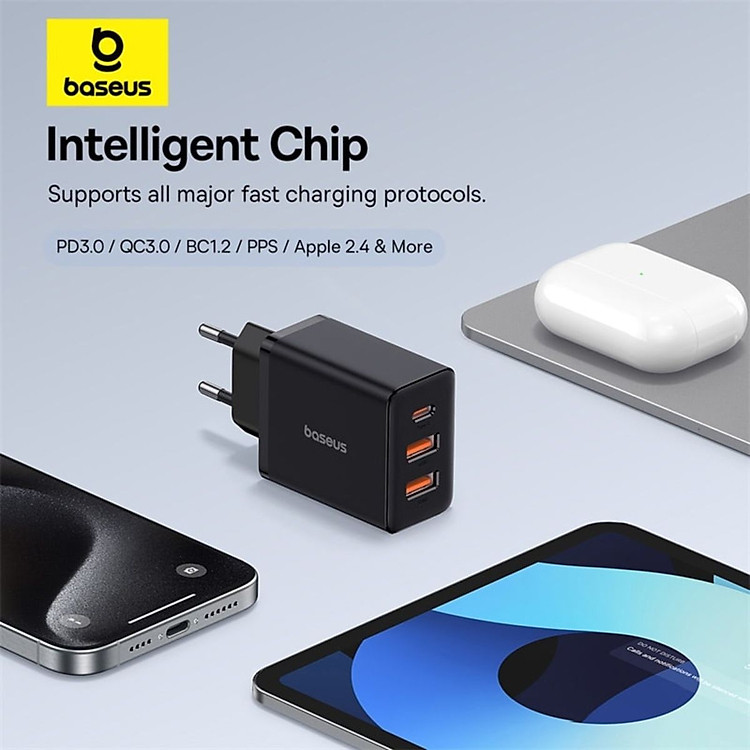 Củ sạc nhanh Baseus Cube Fast Charger 30W (2USB + Type-C) là một lựa chọn tuyệt vời để sạc nhanh và tiện lợi cho các thiết bị di động của bạn.