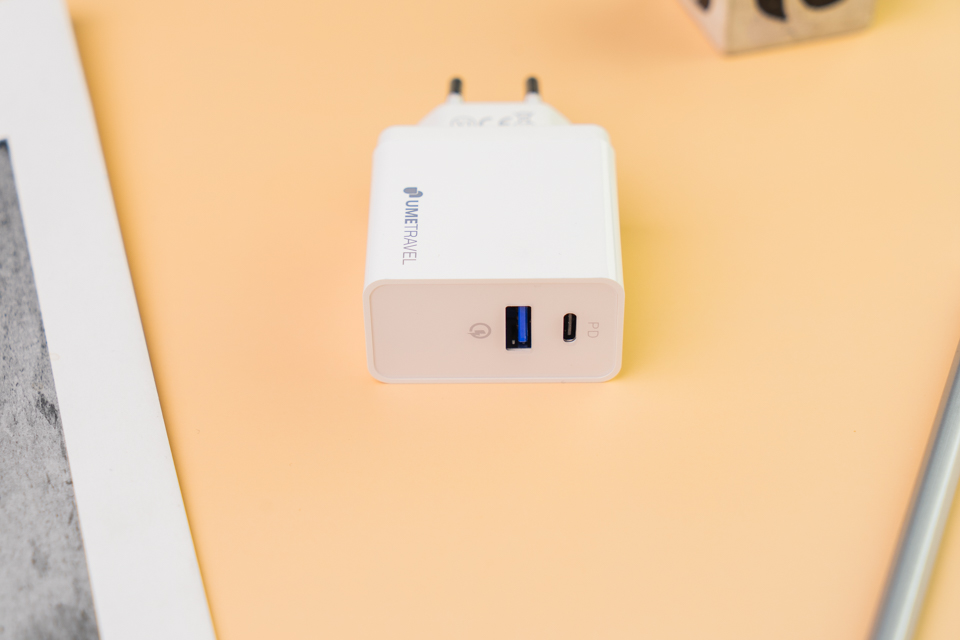 Trên bộ sạc nhanh UmeTravel A4, bạn có thể tìm thấy một cổng USB và một cổng USB-C. Nhờ đó, chủ nhân thiết bị sẽ thoải mái nạp năng lượng song song cho hai chiếc điện thoại trong cùng một thời điểm. Với công suất tối đa là 18W, bộ sạc cho ra dòng điện chất lượng với hiệu suất ổn định và phù hợp với nhiều dòng smartphone trên thị trường hiện nay.
