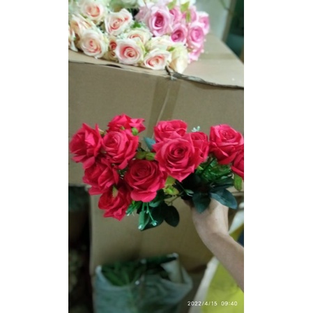 Giới thiệu Hoa giả- Cụm hoa hồng 12 bông hàng đẹp- trang trí nhà cửa