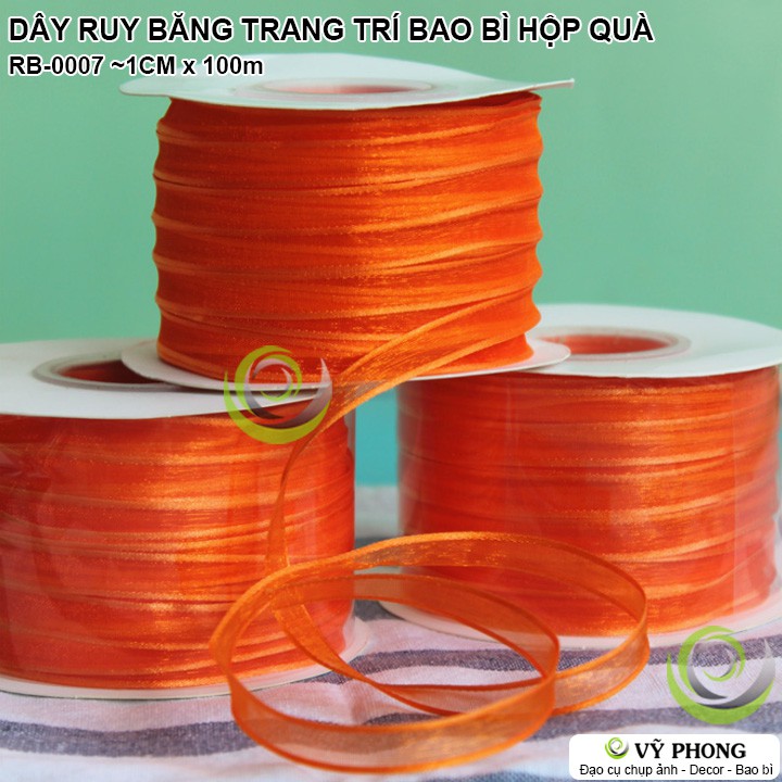 Tên sản phẩm : CUỘN DÂY RUY BĂNG CAM 100m TRANG TRÍ BAO BÌ HỘP QUÀ LỄ TẾT NOEL GIÁNG SINH RB-0007