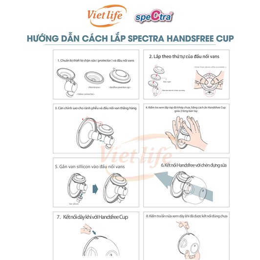 – Bộ dụng cụ hút sữa rảnh tay Spectra (Handsfree Cups) có thiết kế độc đáo cho phép mẹ úp trong bầu ngực mà không cần cởi bỏ áo ngực để hút sữa một cách thoải mái trong lúc làm việc nhà hay việc cơ quan. – Đặc biệt khi gắn bộ chén (cups) hút sữa rảnh tay Handsfree Spectra vào các dòng máy hút sữa đều không làm giảm lực hút, cho mẹ cảm giác êm ái với đệm silicon giáp Massage bầu ngực để sữa ra nhanh hơn và đều hơn. – Bộ dụng cụ hút sữa rảnh tay Spectra (Handsfree Cups) được thiết kế ôm vừa vặn bầu ngực của mẹ với chất liệu silicon mềm mại, cho mẹ có cảm giác êm ái và nhẹ dịu. – Bộ dụng cụ hút sữa rảnh tay Spectra (Handsfree Cups) được làm từ chất liệu an toàn không chứa BPA nên các mẹ yên tâm không ảnh hướng tới bé cũng như mẹ. – Đặc biệt, bộ dụng cụ hút sữa rảnh tay Spectra (Handsfree Cups) có thiết bị chặn sữa đi kèm nằm bên trong cup không gây mất thẩm mỹ, không bị bật tung mặt nạ khi dùng ở level cao của các dòng máy hút sữa, nên các mẹ không phải bận tâm sữa sẽ vào động cơ máy khi hút