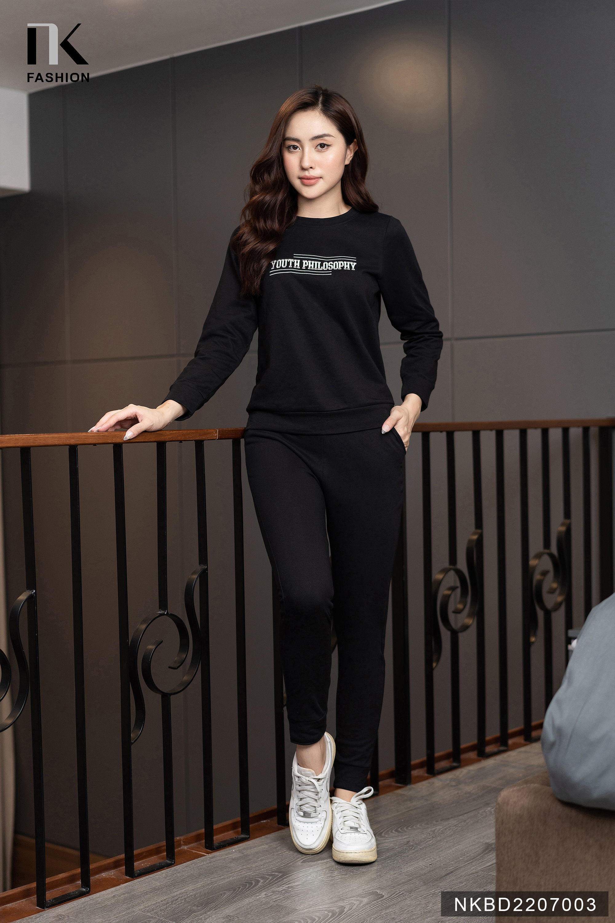 + Vải cao cấp nhập khẩu từ Hàn, mềm mịn, co giãn nhẹ, không nhăn, giữ nhiệt tốt, rất phù hợp với chị em mặc nhà, đi chơi, đi dạo,