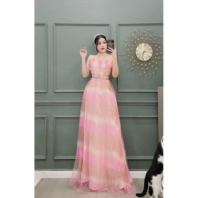Thời Trang Nữ > Đồ liền thân > Đồ bay (Jumpsuits) || ĐẦM LƯỚI CẦU VỒNG 2 DÂY KHOEN EO HOA CÚC