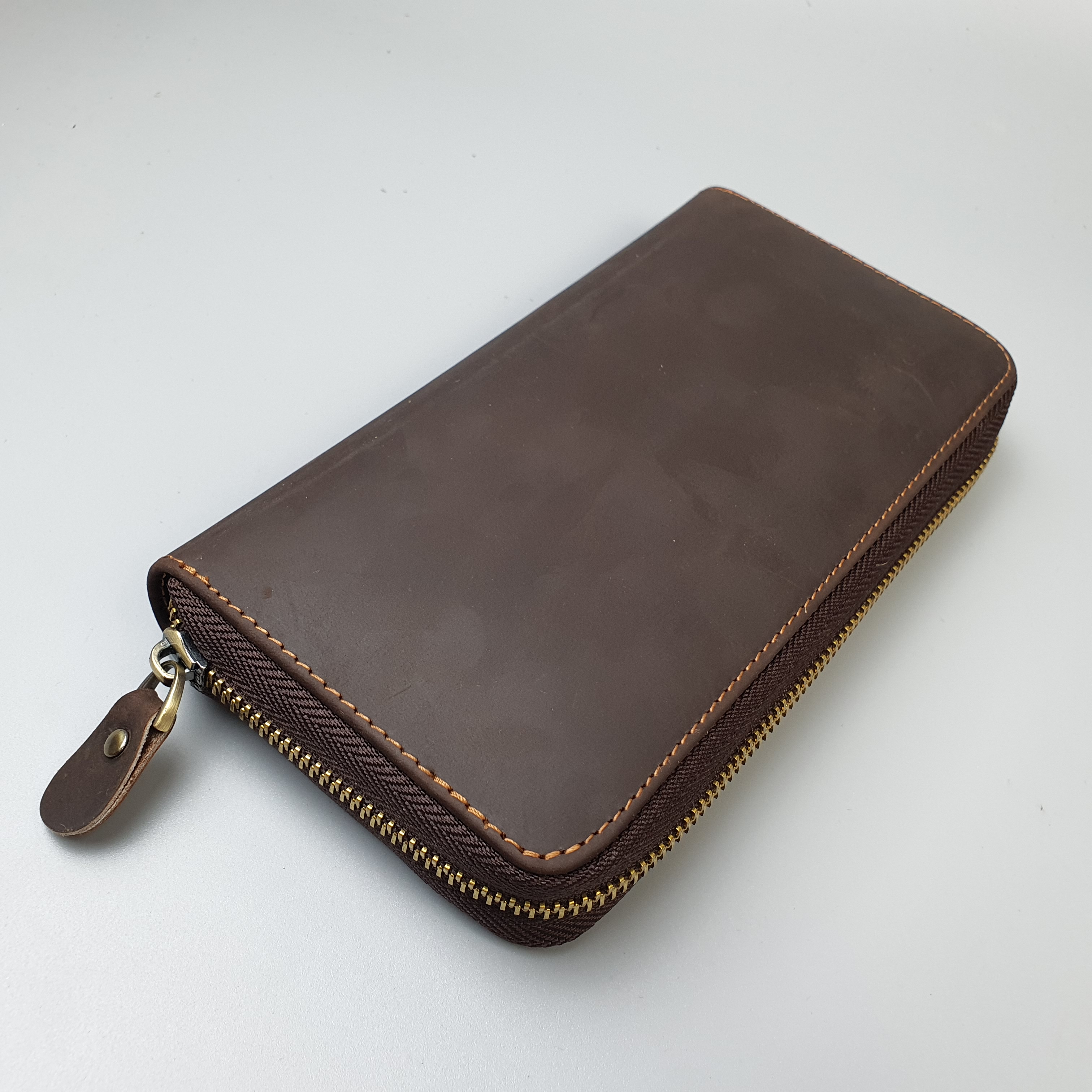 Sản phẩm: Ví dài cầm tay nam/nữ da bò sáp WL119 (Nâu sáp)