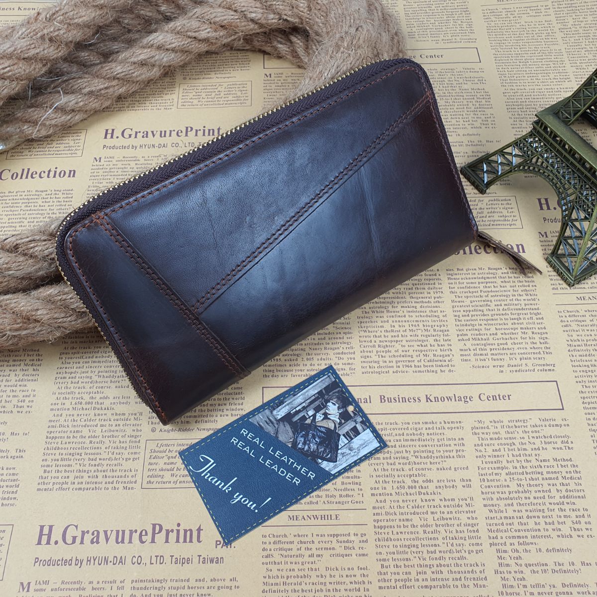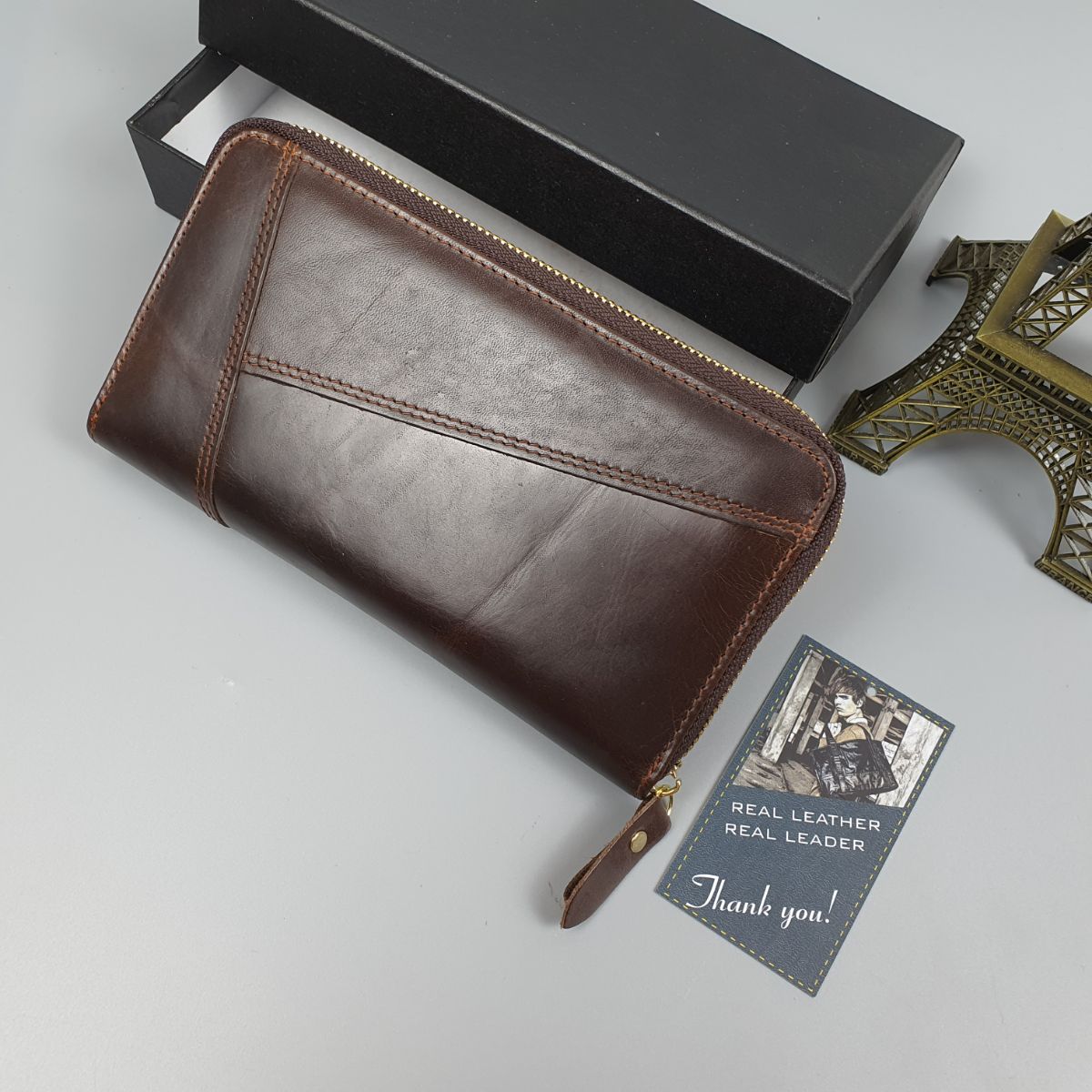 Sản phẩm: Ví dài cầm tay nam; Ví nam da bò thật WL120 (Coffee)