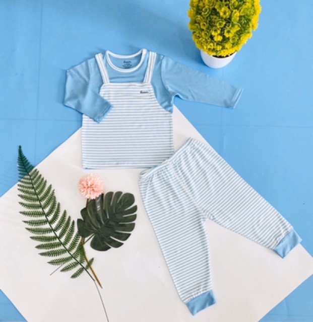 Thời trang trẻ em & trẻ sơ sinh > Quần áo trẻ em > Bộ quần áo || Bộ dài tay cài vai Avaler sợi tre các màu kẻ