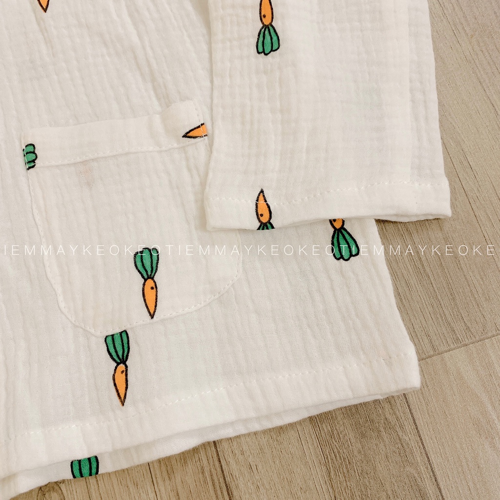 Thời trang trẻ em & trẻ sơ sinh > Quần áo trẻ em > Đồ ngủ || Bộ dài tay hoạ tiết cà rốt Tiemmaykeokeo vải xô mulin mềm mại cao cấp cho bé gái nhiều mẫu vải đẹp hàng may đo kĩ loại 1