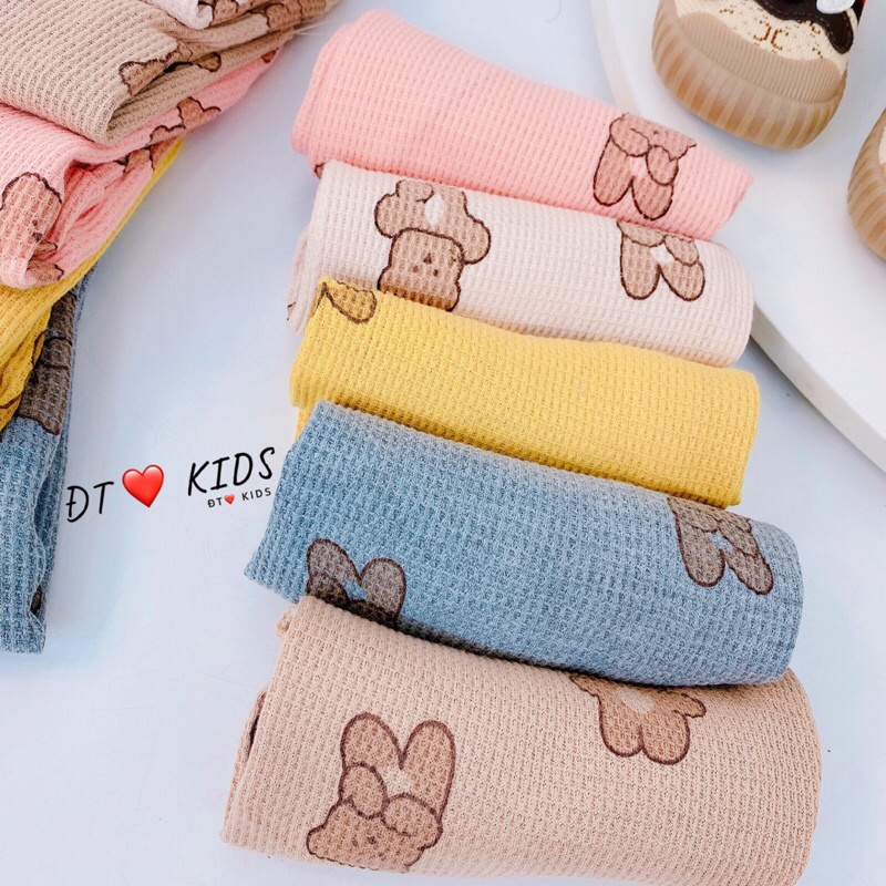 Đồ bộ dài tay thu đông bé trai bé gái chất xốp tổ ong hoạ tiết thỏ_Quần áo trẻ em thu đông