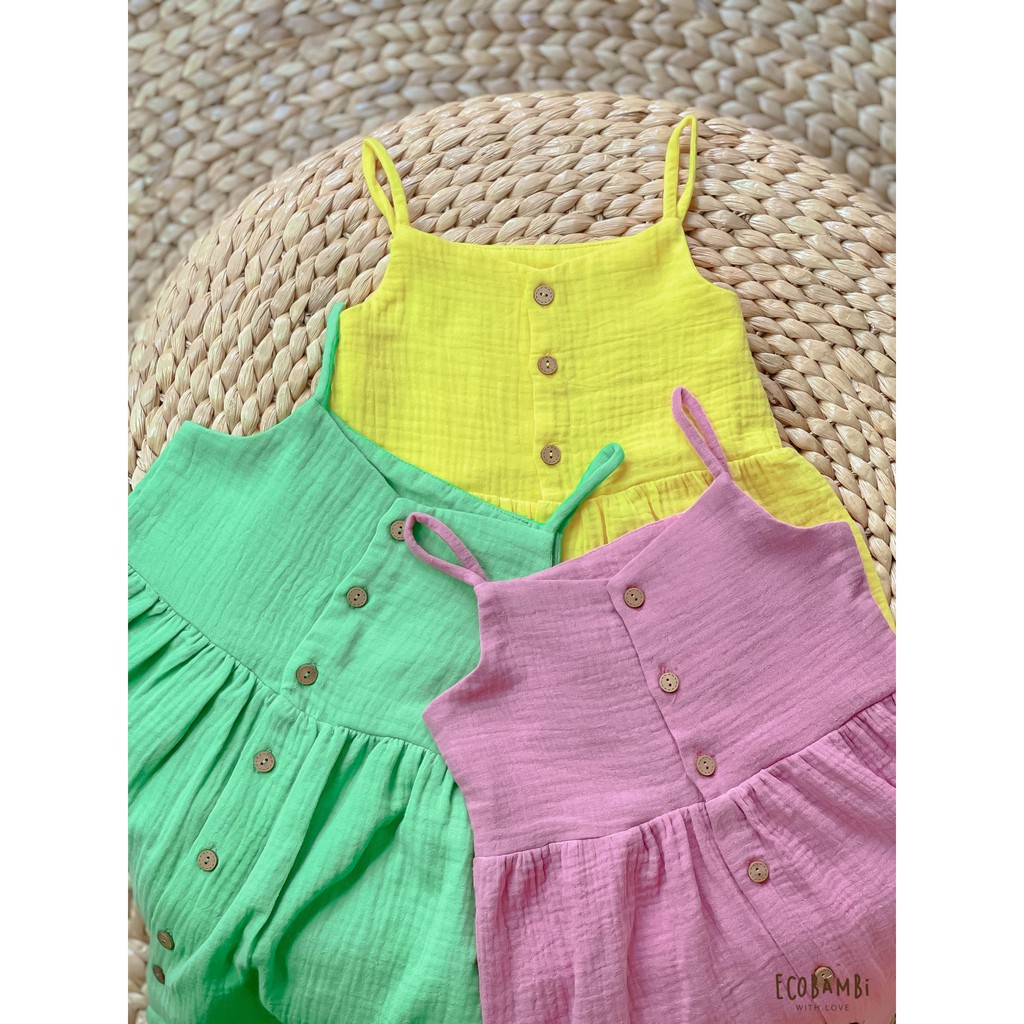 Giới thiệu Đầm 2 dây bé gái muslin cotton Ecobambi