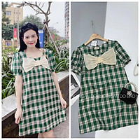 Váy bầu thời trang thiết kế kẻ caro chất Cotton thô freesize từ 45 đến 70kg