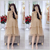 Đầm bầu thời trang dạo phố chất liệu voan lụa hai lớp
