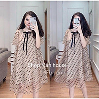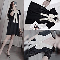 Váy bầu công sở thu đông thiết kế dáng suông cổ nơ freesize tới 70kg
