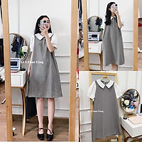Váy bầu thời trang thiết kế kẻ caro chất thô freesize từ 45 đến 70kg