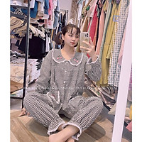 Bộ bầu và sau sinh dài tay kẻ, cổ sen ren siêu xinh, có khoá kéo cho bé ti
