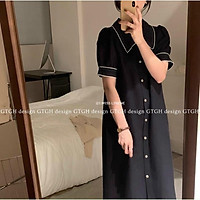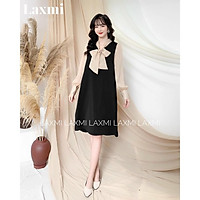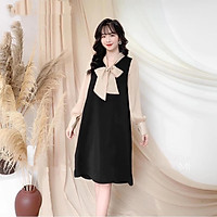 Váy bầu thời trang đầm thiết kế áo sơ mi trắng cổ bèo váy suông đen chất lụa hàn châu 5.0